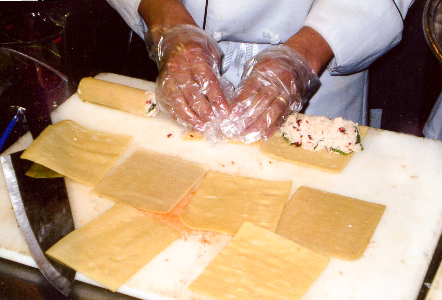 Convito’s lasagnas and cannellonis continued to be popular items for both our customers and the airline since they were so well suited to reheating. One recipe American adopted was one I developed for my daughter’s wedding that was catered by Convito in the historic and elegant Chicago Cultural Center. I used only ingredients that she loved; chicken, mushrooms, spinach, ricotta, mozzarella and parmesan. We named it Country Cannelloni. I’m not sure what it was called on the American menu, but I do know that they served it for years.