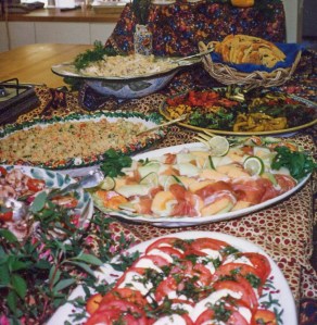 While visions of sugarplums (hopefully) danced in their heads, I went about the business of preparing the next item on my Christmas Eve agenda; something different, something new – my Midnight Antipasti Buffet! I decided to add this not because of Bob’s Italian heritage (it had not been a part of his family’s traditions) nor as a prelude to the Italian market I would open years later, but simply because I thought it was a “cool” idea – one I came up with during my musings about my first Christmas and subsequent research. And..well…and I did love Italian food!