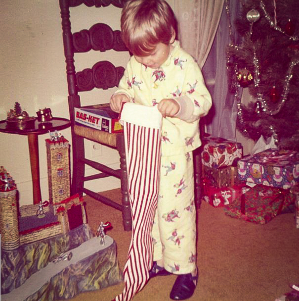 At four, Robby was fully appreciative of Christmas and all its festive traditions. Candace – barely a year old – was still too young to understand this was an annual occasion, but she certainly recognized that wearing a fancy new red-velvet dress, getting to help sprinkle iced Christmas cookies with red and green “candies” (the ones that didn’t go into her mouth) and waking up to a big tree ablaze with twinkling lights and surrounded by presents was certainly not an everyday occurrence. And who she must have wondered, was this mysterious “Santa Claus” that everyone was talking about?