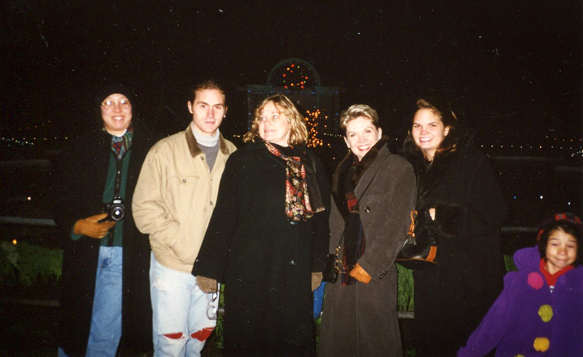 We had a wonderful time, so wonderful that we repeated it the following year with the whole extended Brussat family; the three sisters and their families together for the first time in a very long time. Amazingly, all of our grown children (we each had two) brought either their spouses or fiancés or girlfriends/boyfriends. The only grandchild at that time was Tessa, Elizabeth’s daughter, Karen and Jeff’s grandchild. Everyone was in love with Tessa so there was much competition for her attention. We began our festivities on Christmas Eve at my sister Karen’s art studio with not only a delicious meal but all kinds of artistic touches including Christmassy place mats Karen made for each of us containing lovely family photos of the cousins in their growing up years.