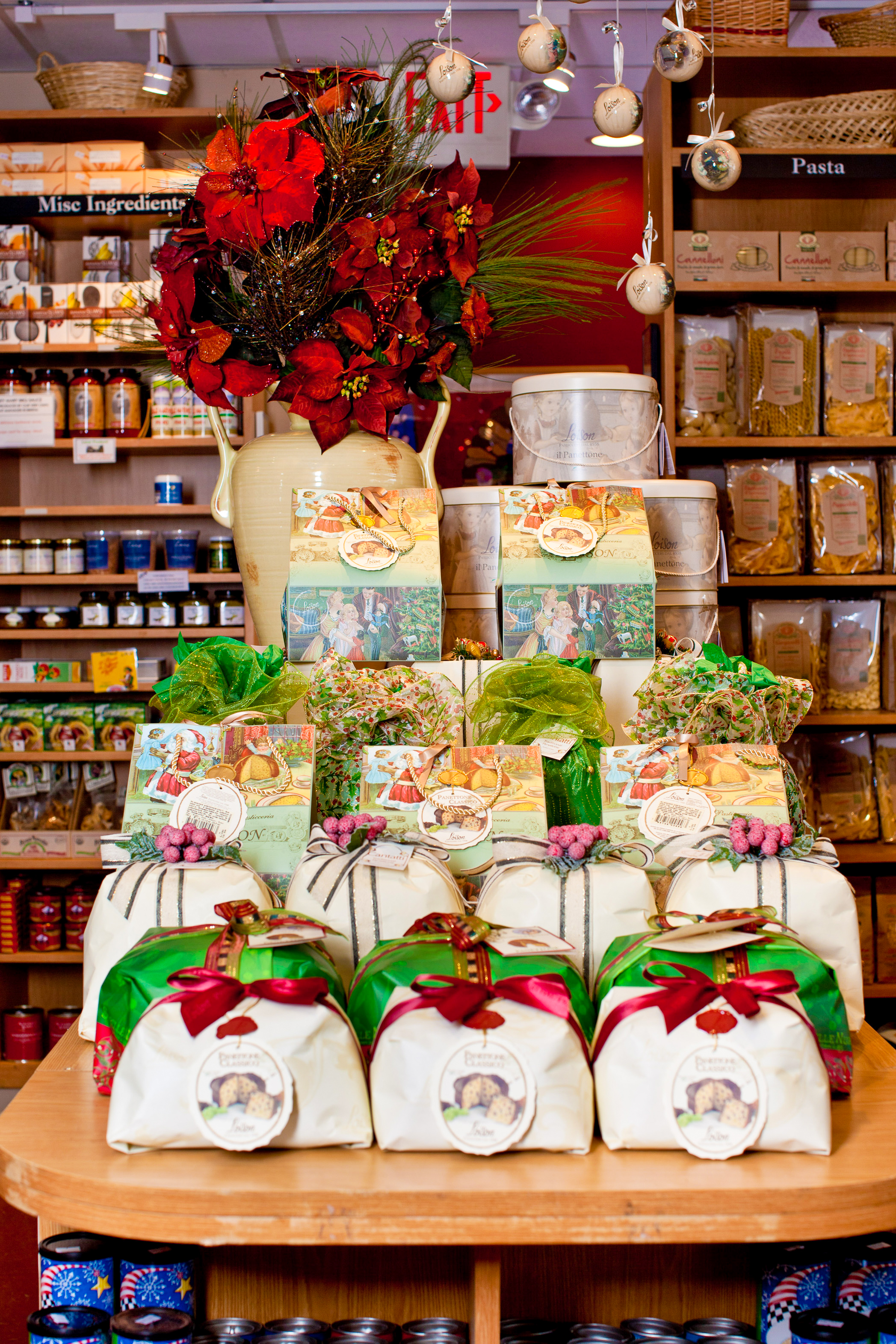 Beautifully wrapped, multi-colored panettones (a sweet bread originally from Milan, speckled with raisins and candied citrus) always added color to the Christmas decor of Convito. When we first began selling panettone, it was only the classic version that was available for import and only from a few select producers. As they grew in popularity in the U.S., panettones began to come in a multitude of flavors, from a multitude of producers– cappuccino, apple, amareno cherry, pistachio and chocolate in a number of different combinations – orange, pear, fig – and many many more. Today our selection is incredible – in my opinion, the best and most in-depth I have ever seen.